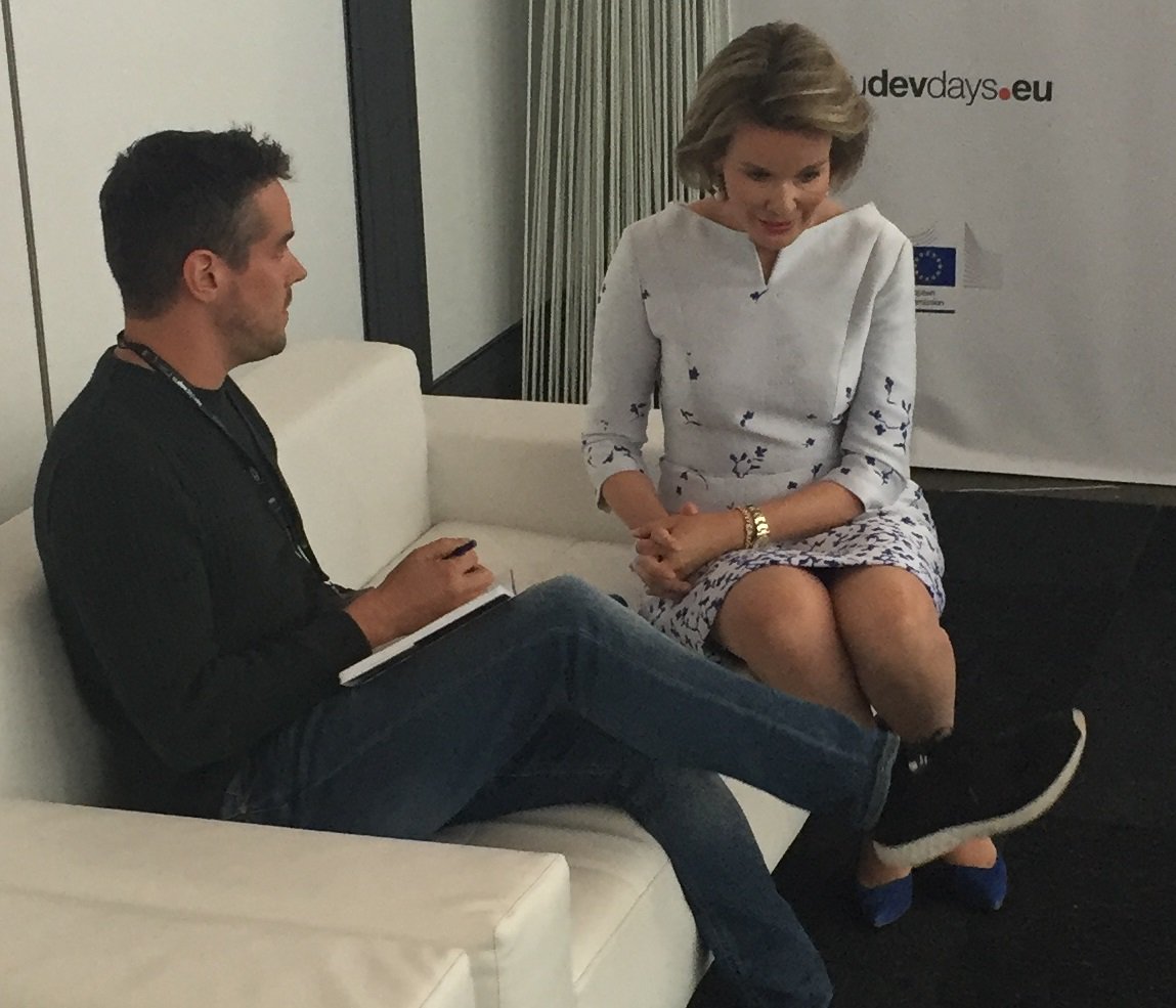 In the afternoon Mathilde visited the stands at Tour & Taxis and she opened the panel debate 'Leaving no one behind'.