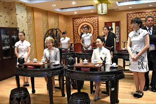 Queen Mathilde had lunch with a selection of Chinese leading ladies at the Beijing Temple Hotel that's run by Belgian Juan Van Wassenhove.
