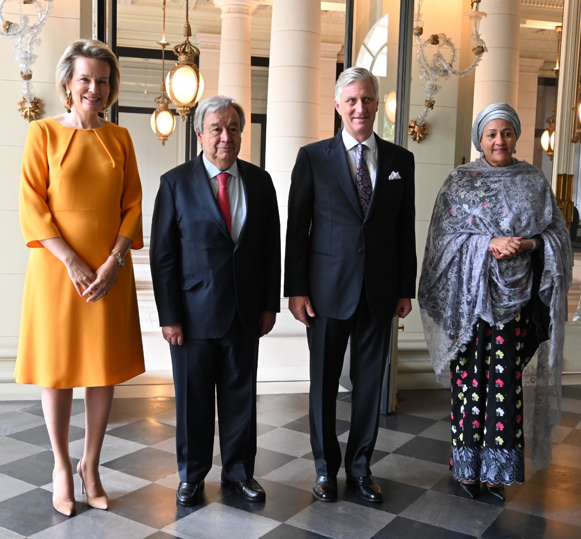 King Philippe & Queen Mathilde granted an audience to UN secretary-general António Guterres and UN deputy secretary-general Amina J. Mohammed at the Royal Palace in Brussels.